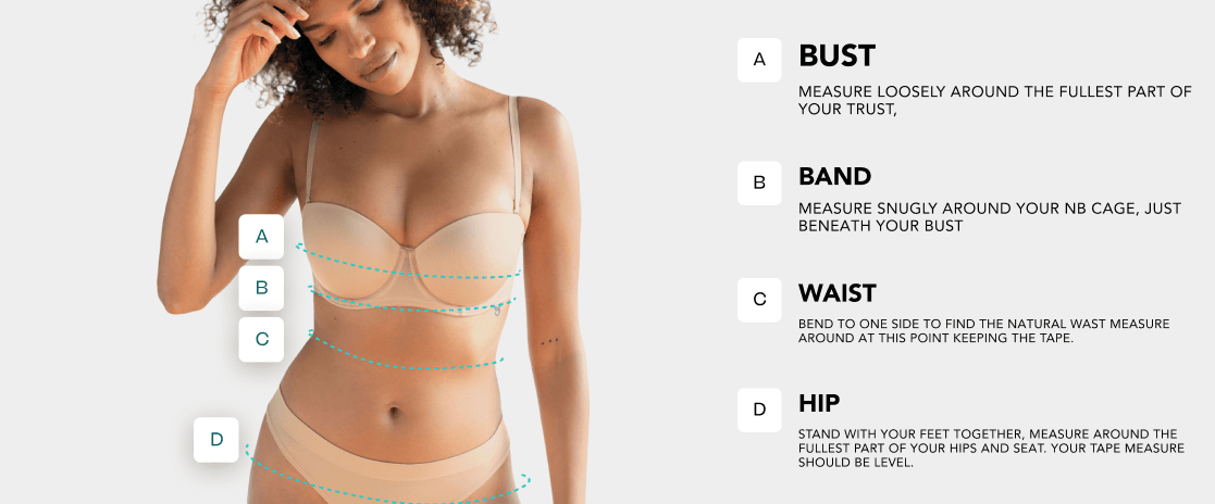 | CUP SIZE | 65AA-A | 70A-B | 75B-C | 80C-D | 85D-E | 90E-F | 95F-G | 100G-H | 105H |